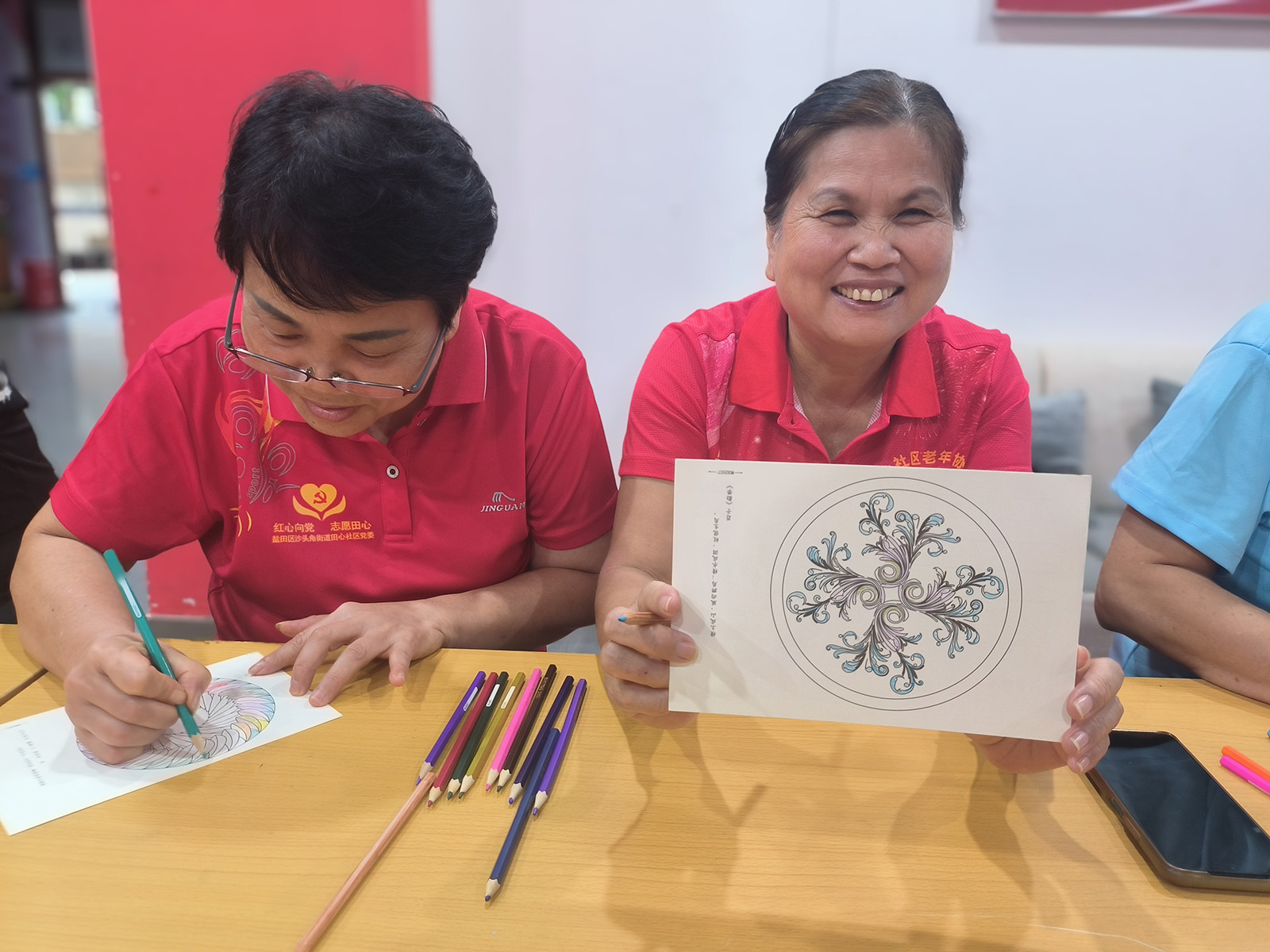该活动在国家二级心理咨询师林丽珍带领下,社区社工通过认识曼陀罗绘画疗法,尤其详细了解曼陀罗绘画起源及心理意义;随后,居民在曼陀罗绘画创作过程中享受自我疗愈的心灵之旅。